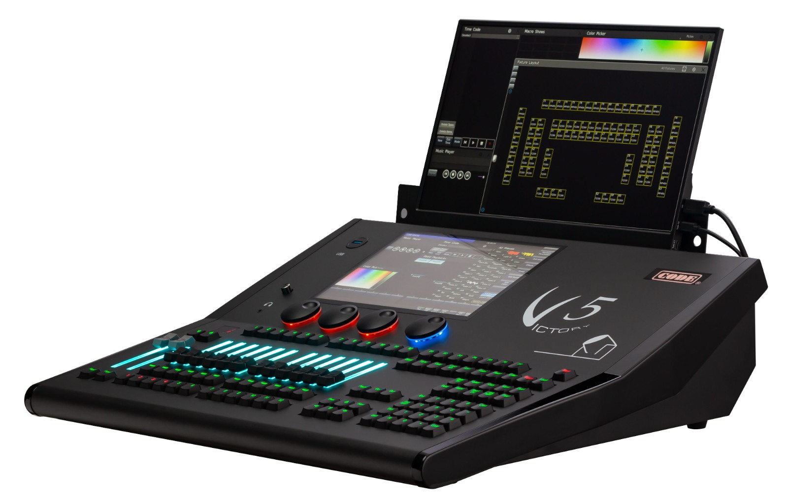 ● 時候碼(燈光秀)撐持外部音樂,外部MIDI,外部時鐘,一鍵啟動多種觸發形式。